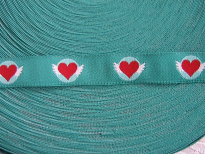 Webband - Herz mit Flügeln - 15 mm - türkis