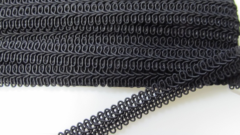 Posamentenborte - 14 mm - schwarz - nicht starr - jedoch etwas fester als Kunstseide 65% CV-Viskose/35% Baumwolle - waschbar 30 Grad, 1 Punkt bügeln, P